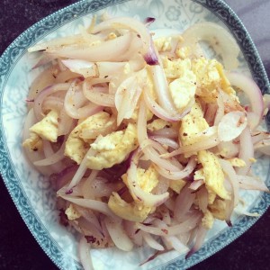 再加入蛋饼翻炒两分钟左右 加入盐 鸡精 胡椒粉 翻炒均匀 盛出