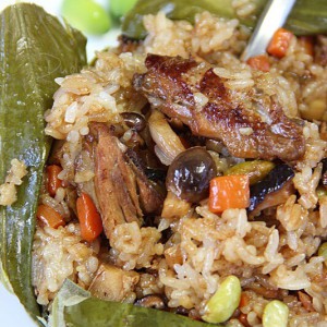 带有荷叶特殊清香的荷叶鸡饭喷香出炉了: