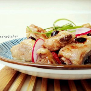 从冰箱取出,撒上蒜末,豆豉(如果是干豆豉就要用刀拍几下再放入),撒盐,胡椒粉,米酒(不含米粒)。搅拌均匀,腌制15分钟。