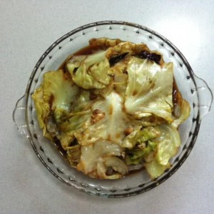 翻炒知道包菜稍微变色,倒入适量的醋继续翻炒。