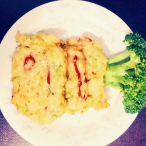 将备用的西兰花,红椒,青椒,肉肉,蒜末倒入土豆泥中,加少许盐,生抽,面粉。