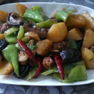 差不多的时候,加入青椒,盖上锅盖,中火煮,慢慢的收汁