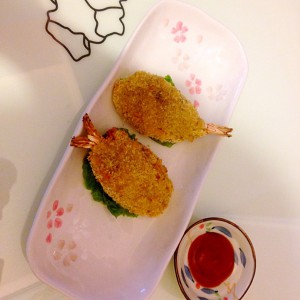 土豆泥分5分。擀成直径比虾长略长的圆,包住虾。裹蛋液,裹面包粉(我只有半斤土豆,不够裹虾了。。。)