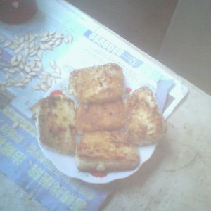 这步忘了拍照,将切片馒头上裹满鸡蛋液