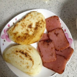 放冰箱过夜的冷馒头切片,冷水加少许盐