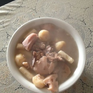 铁棍山药去皮,切成10cm长的小段。在汤要炖好前30分钟下锅炖。