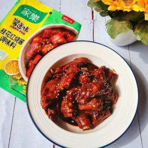 装盘,洒上料包里自带的桂花,香喷喷的桂花排骨就可以上桌了。