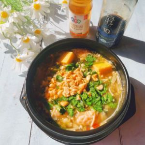 煮个五分钟,筷子能夹断粉丝了,在把金针菇菠菜放进去。倒入二勺六月鲜10克轻盐特级原汁酱油和三勺米醋。盐胡椒粉和鸡精也放入。