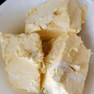 淡奶油放入无水无油器皿中加入适量白糖打发