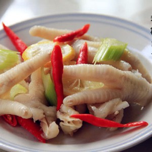 先把鸡爪洗干净,然后把鸡爪的指甲给剪了,剖成两半。