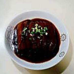 12. 滗出的原汤用水淀粉勾芡,然后浇淋在扣肉上把扣肉稍事点缀便可上桌食用。,。