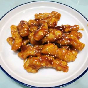 撒上一把白芝麻或者小葱,糖醋里脊完成