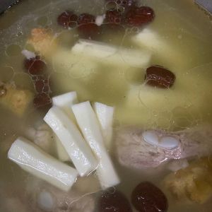 红枣,桂圆,枸杞虽然拍图了,但是没放,我家孩子不喜欢吃枸杞,如果喜欢枸杞的关火前10分钟左右放锅里,不要提前,其它可以随排骨一同放入
