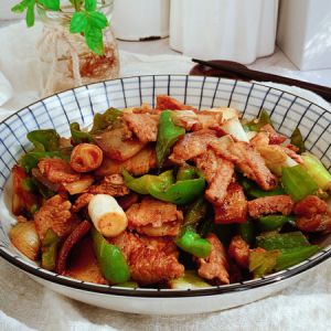 这道菜一定要选带皮猪肉,炒出来Q弹劲道,超级过瘾。准备好的猪肉切片,三分肥七分瘦,肉质鲜红细嫩。