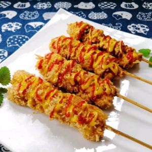 我的鳞片面搓少了不够用,有几串儿用了一些面包糠。
