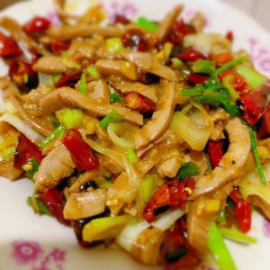 在炒葱 辣椒 放入调料 在把之前炒好的腰花倒入锅中搅拌均匀即可