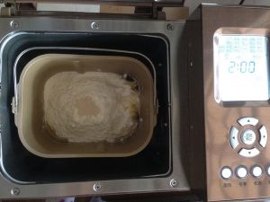 将面包桶放到面包机内,选择标准面包程序,默认烧色中,重量选900克。总时间为2个小时。