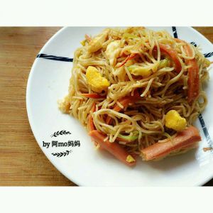 炒到面条外皮微微发脆,就可以关火