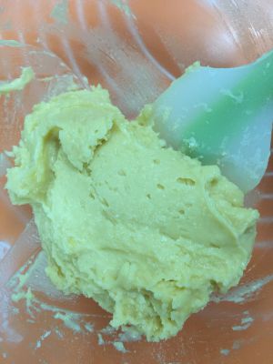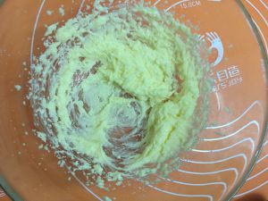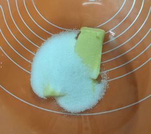 在面粉发酵的时候,准备菠萝皮。将细砂糖加入软化的黄油中。