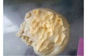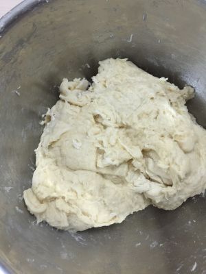 (忘记拍照,只好继续采用大师的图片)面团光滑后加入已经软化的黄油,继续用搓和收拢的动作揉面。