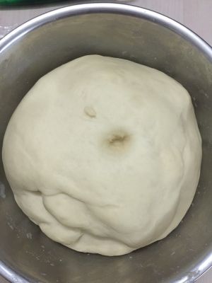 体积膨大2倍左右,用手指轻轻按一下面团,指印处不会立刻回复,也不会立刻塌陷,发酵完成。
