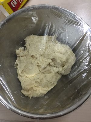 盖上保鲜膜,静止20分钟。夏天气温高,最好放至冰箱冷藏,以免酵母快速发酵。