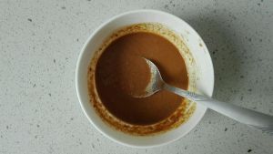 1 小碗中放入一勺醋,一勺酱油,半勺耗油,一大勺芝麻酱,加入少许清水化开。