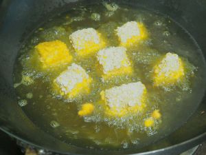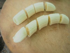 锅中倒入食用油,等油加热将香蕉放锅中炸