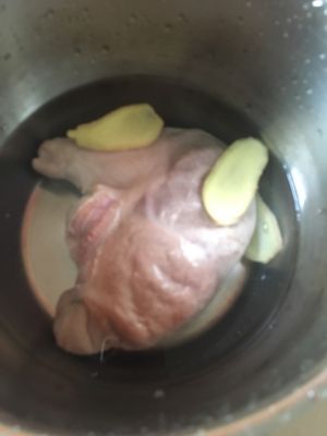 放清洗莫过猪肚,再放几片老姜片,煲开