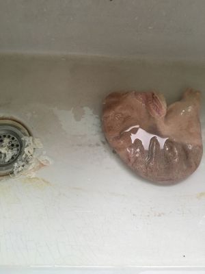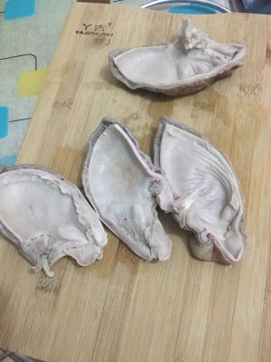 热好猪肚,有一个部位有一些白白的东西,这个必须抠掉。