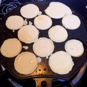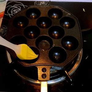 来做小丸子啦:倒入面糊糊,到坑坑的边缘。