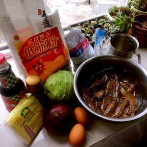放这个酱料,某宝有售,也可以再加上沙拉。家里正好吃没了,我就没放。没放柴鱼片。虾就已经很美味了。柴鱼片太抢味。锅也是在某宝买的,不到50块。