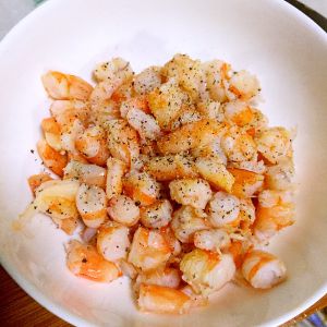 取出来以后剥皮,切段,放点现磨黑胡椒调味,不要太多,没有也可以。活虾的味道本身就非常鲜甜。