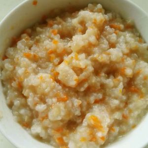 将煮好的菜放入粥里搅拌均匀,可以喂宝宝了