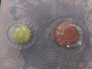 把两个色的面团揉圆用玻璃碗盖住静置20分钟