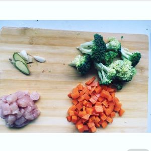 鸡肉 胡萝卜切块 姜葱备用