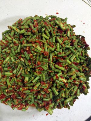 豇豆买回来先晒一下,就晒一天就可以了,这样腌的豇豆会是脆的