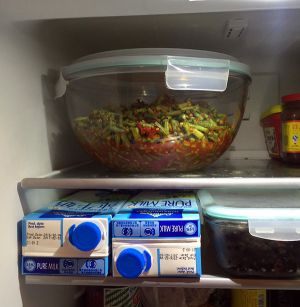 密封放冰箱货腌菜坛子里都可以,只是放冰箱的时间会长一点,大概半个月到一个月