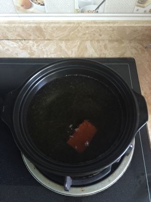 在砂锅里加入适量的水,然后把红糖放进去等着水开