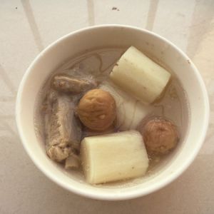 所有食物一起放进锅里,加三分之二的水煮,水开后小火炖一小时,关火,放盐就可食用。