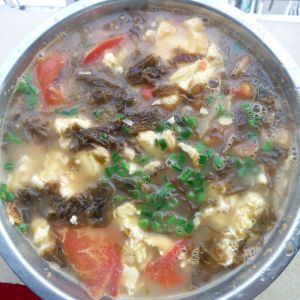 西红柿加进去一起翻炒片刻,这时就把鸡蛋饼饼炒散啦