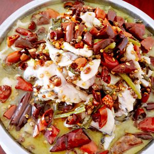 用鱼骨汤,将鱼片,一片一片的夹进锅里烧开一会熟了就可以了。装进刚刚装有酸菜鱼骨的盘里上层。