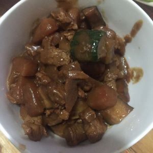 油锅热了下肉丁煸炒,变色后加入土豆和甜面酱继续翻炒,等快出锅时放入黄瓜丁快速翻炒出锅