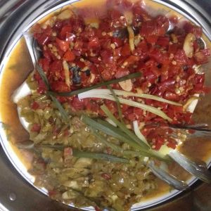 把葱段也放到鱼头上面。(最好是做好以上步骤再开始烧水,这样可以让剁椒汁水有个时间来腌一下鱼头,)弄好之后,在蒸锅里加水,起火烧到水开了两三分钟,有气冒出来。这个时候就可以把鱼头放入蒸锅里开始蒸,蒸5-10分钟(这个主要看你鱼头的大小,和自己蒸锅里的温度来定)。蒸好之后,把鱼拿出来,去掉葱和姜片,撒点葱花,起锅烧点香油,淋在鱼头上。就可以来吃了。。