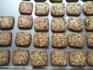 烤箱180度预热,将烤盘放入烤箱中层,上下火12-15分钟左右。温度时间仅供参考。观察饼干表面色泽略微变黄即可关火。