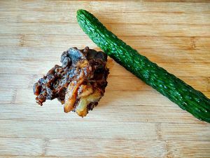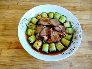 把调好的汁均匀的浇在酱牛肉和黄瓜卷上,色香味俱全的酱牛肉黄瓜卷就做好了。开吃吧!