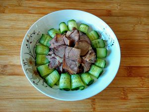把酱牛肉切片摆在中间,基本上已经做好了。