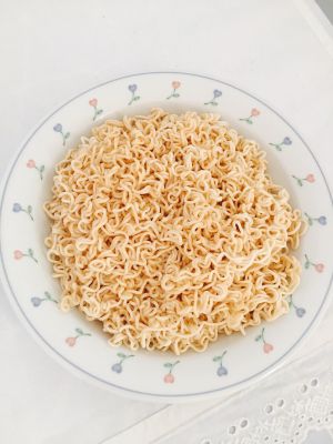 用开水把方便面烫散,不要烫时间太长,硬一点比较好