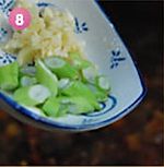 头出锅的时候放入香葱和蒜末翻炒均匀,加入少许味精即可出锅。