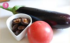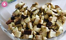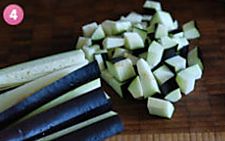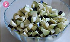 茄子先切成条,然后改刀成丁。